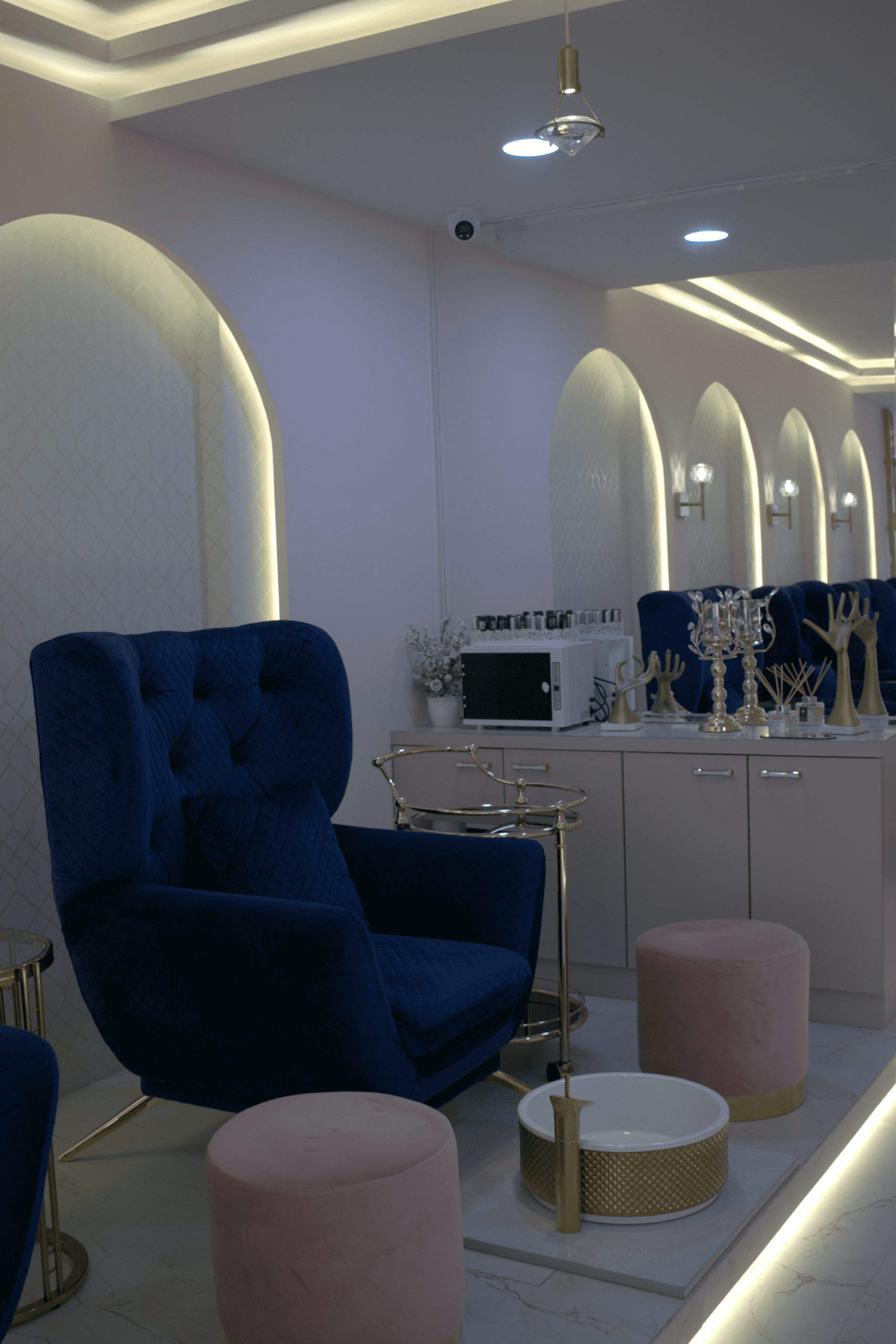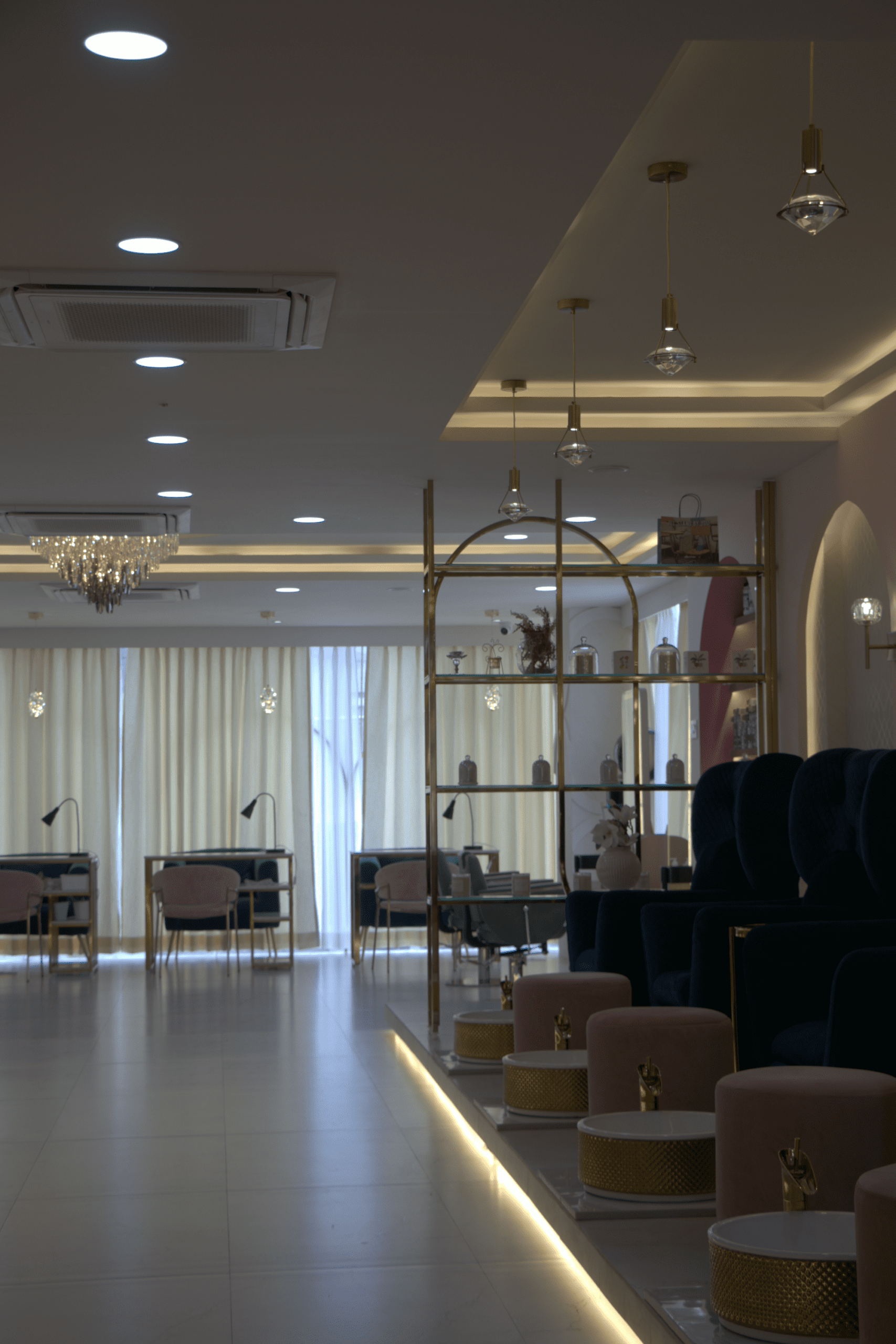 Our goal with this project was to create a salon environment that not only reflects the brand’s identity but also offers clients a premium beauty experience that feels indulgent and memorable. By blending the timeless charm of Art Deco with modern design sensibilities, we transformed the space into a stylish destination where beauty and luxury coexist effortlessly.