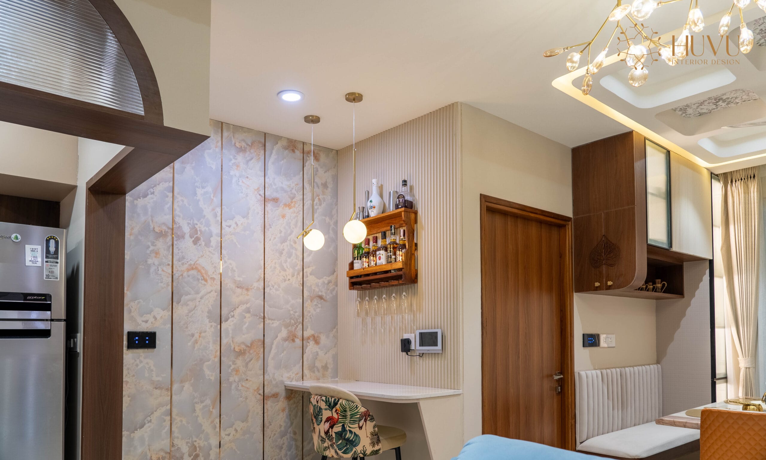 Material selection played a key role in defining the character of the space. Premium textures, refined surfaces, and modern design accents add depth and elegance to the overall interior while maintaining a cohesive design theme throughout the property.