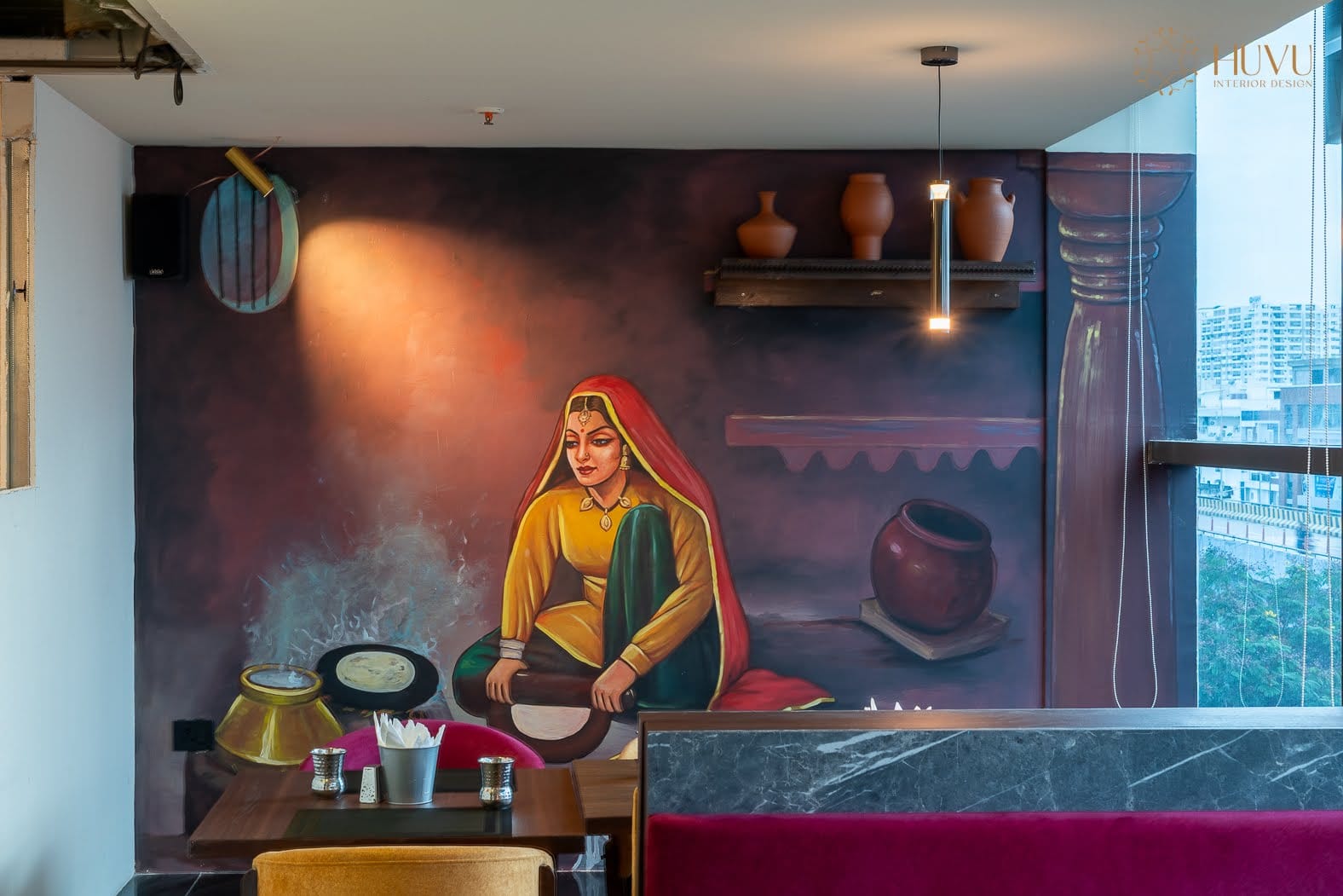 The interiors showcase a harmonious mix of traditional Punjabi elements and contemporary design features. Rich textures, earthy tones, and handcrafted decorative accents were used to highlight the cultural roots of the space. Elements such as rustic wood finishes, patterned tiles, warm lighting, and artistic wall décor help create an environment that feels both nostalgic and modern.